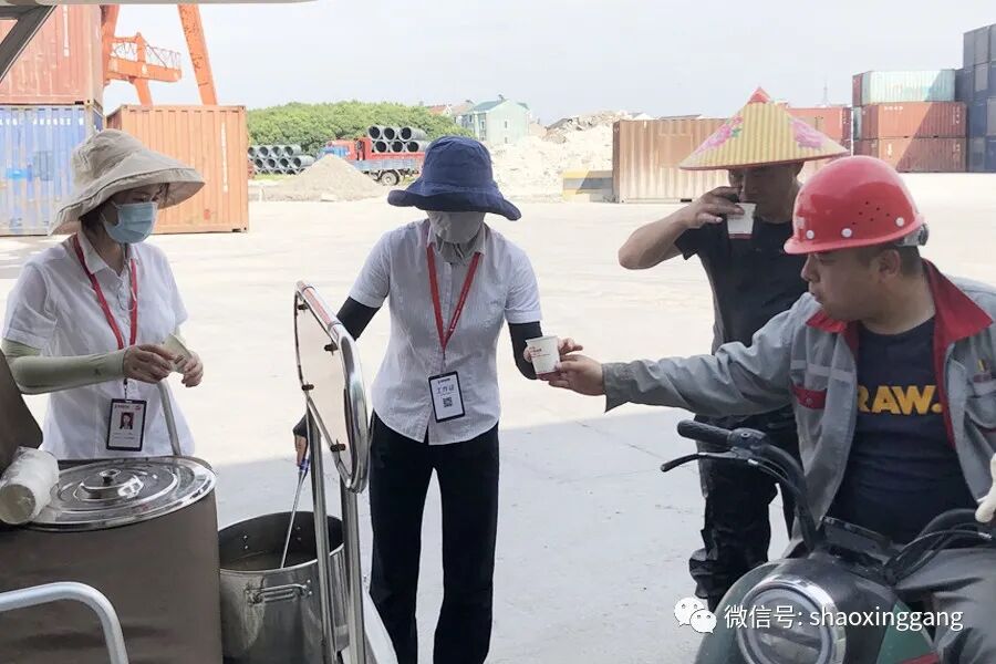 7月12日下午,在紹興港綜合管理部的組織下,“清涼一夏”慰問活動再次暖心啟動。綜合管理部的員工代表深入園區(qū)碼頭、倉庫堆場和后勤保障等一線崗位,為高溫下仍堅守崗位的一線員工送去綠豆湯、毛巾、棒冰等慰問物資。